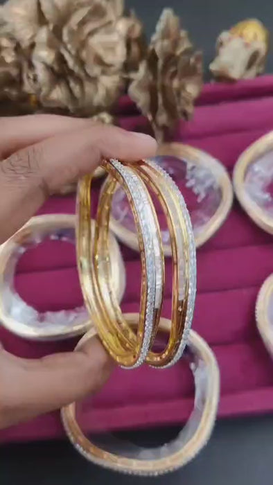 Dual Tone Diamond Finish Bangle Set for Women – Gold Polish with Baguette Detailing
