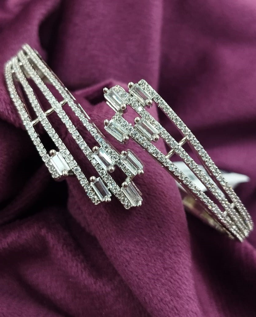 Multi Line Diamond Bracelet in Silver Polish | Openable Baguette Designer Bracelet for Women