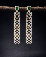 Luxury Geometric Diamond Drop Earrings – Green TOP Stone with White Diamonds in Gold & Silver Polish