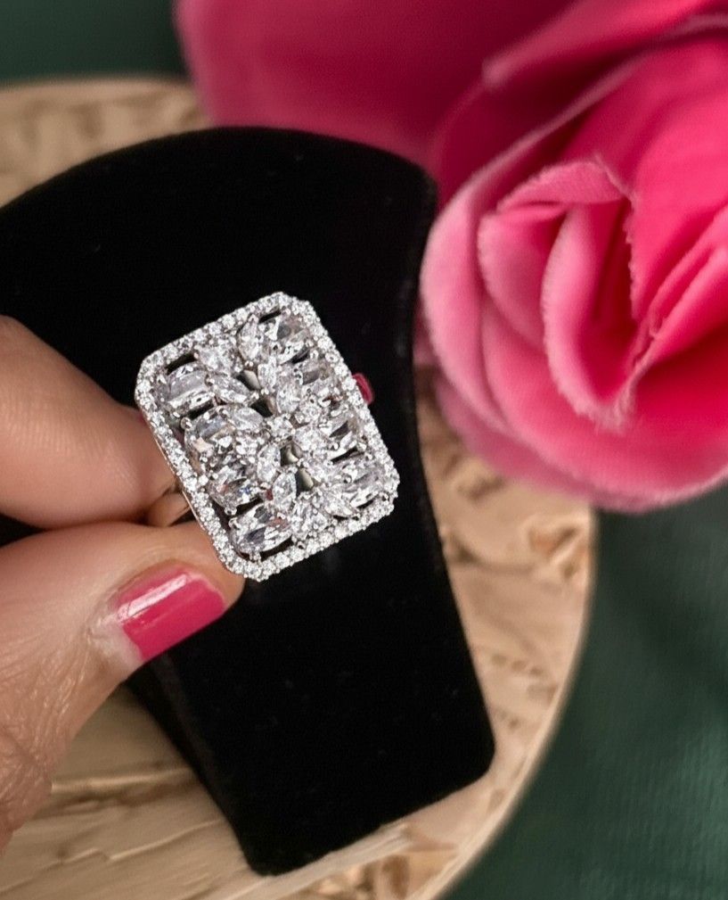 Adjustable AD Stone Statement Ring for Women – Multi Colour Variants