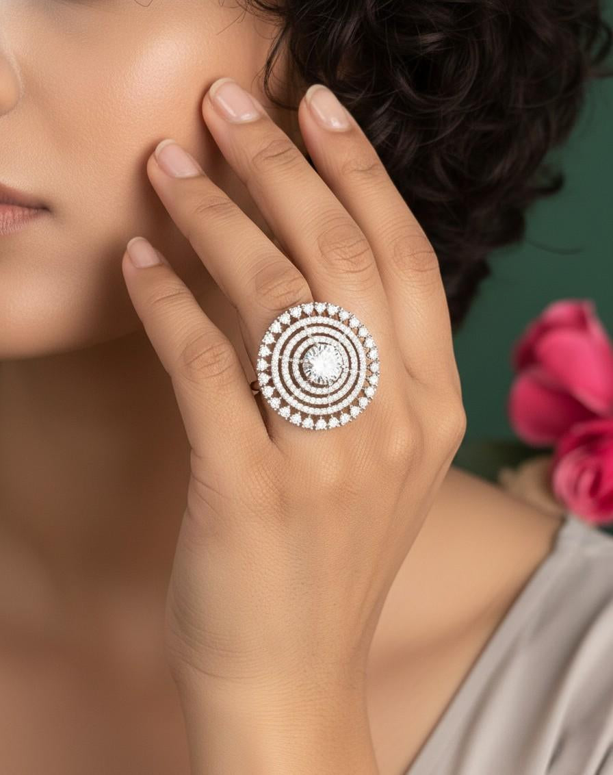 Round Statement Adjustable Ring for Women – Gold & Silver Finish