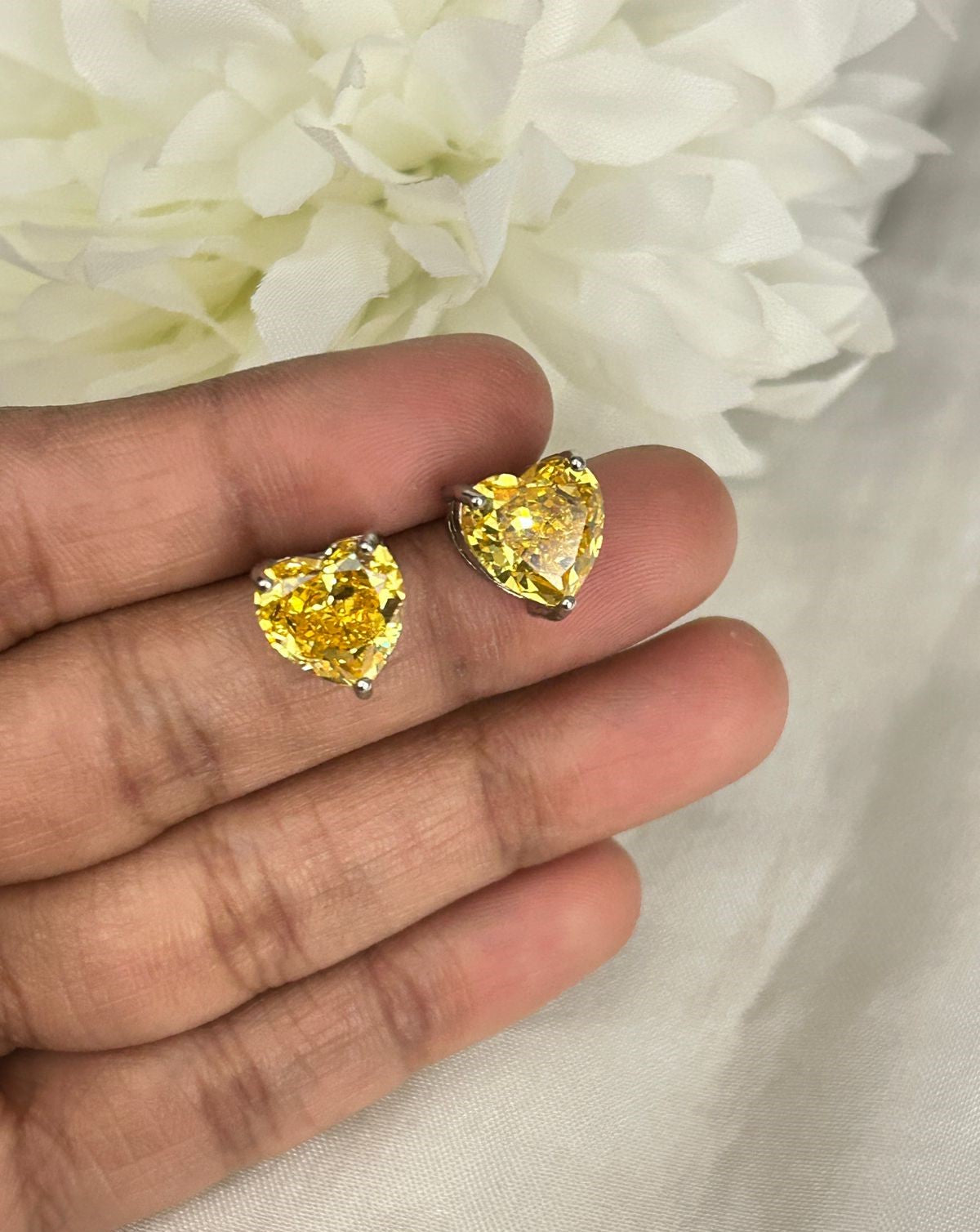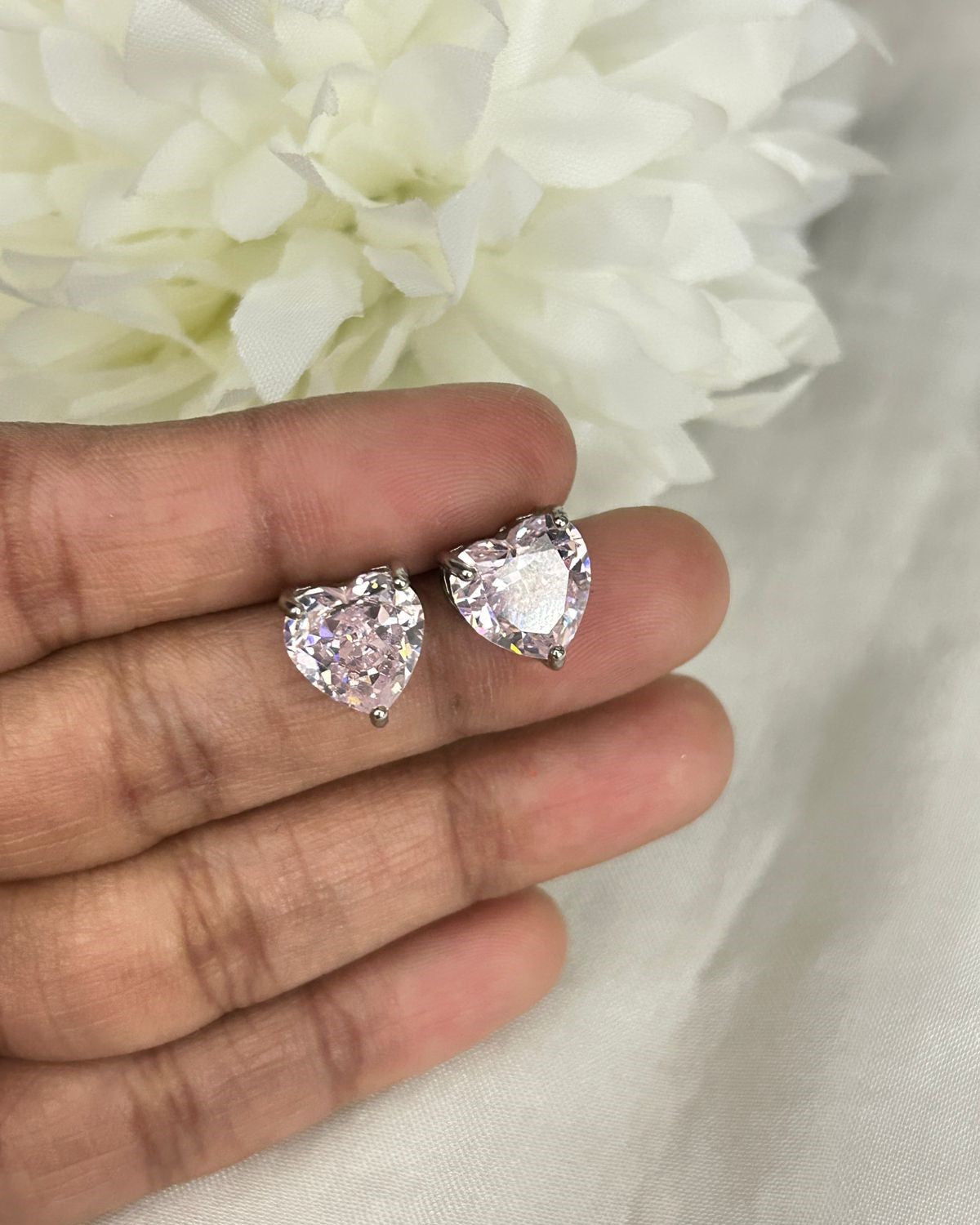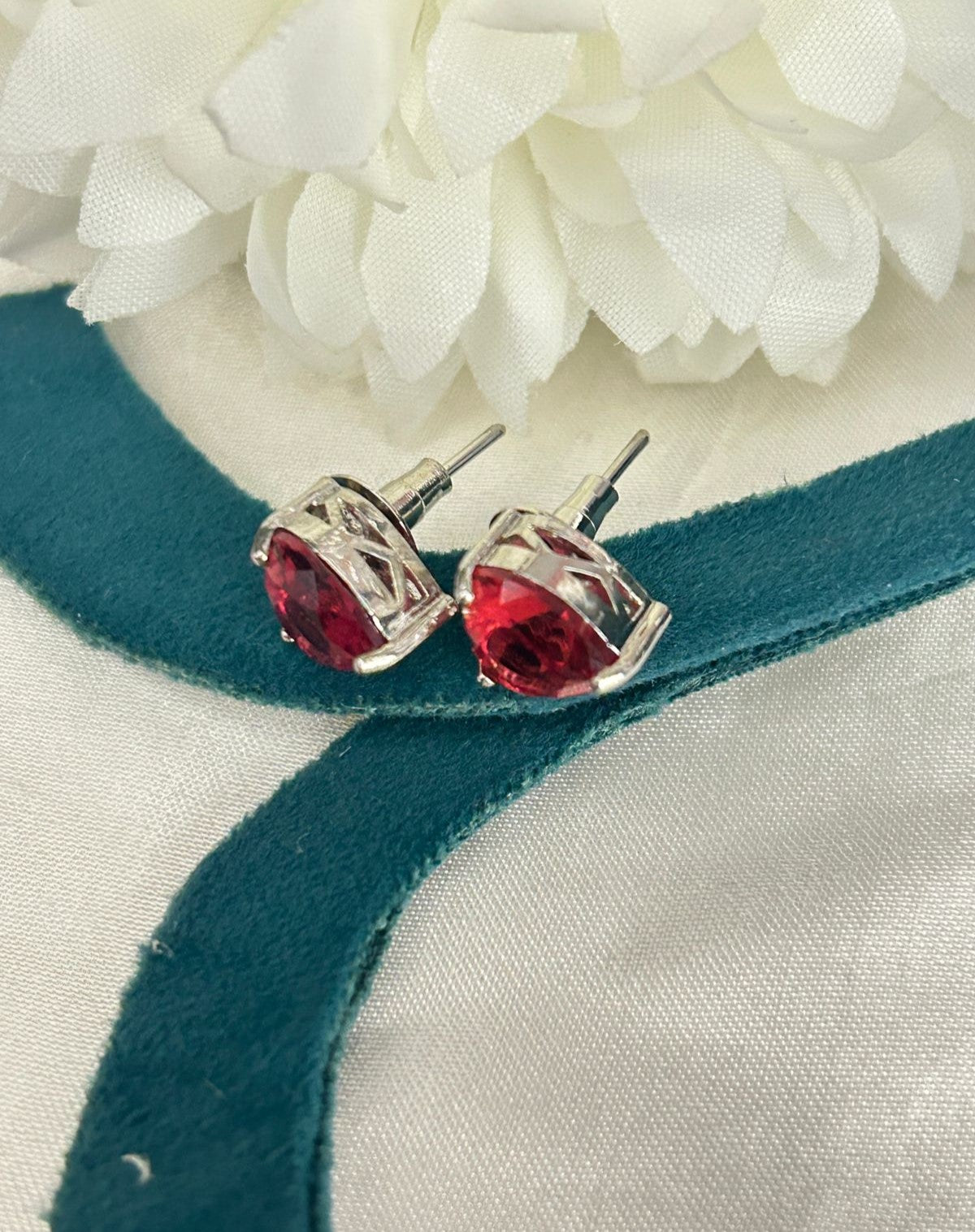 Swarovski Heart Cut Crystal Stud Earrings – Silver Finish | Multi Colour Options