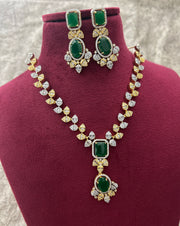 Gold Polish American Diamond Green Stone Designer Necklace Set